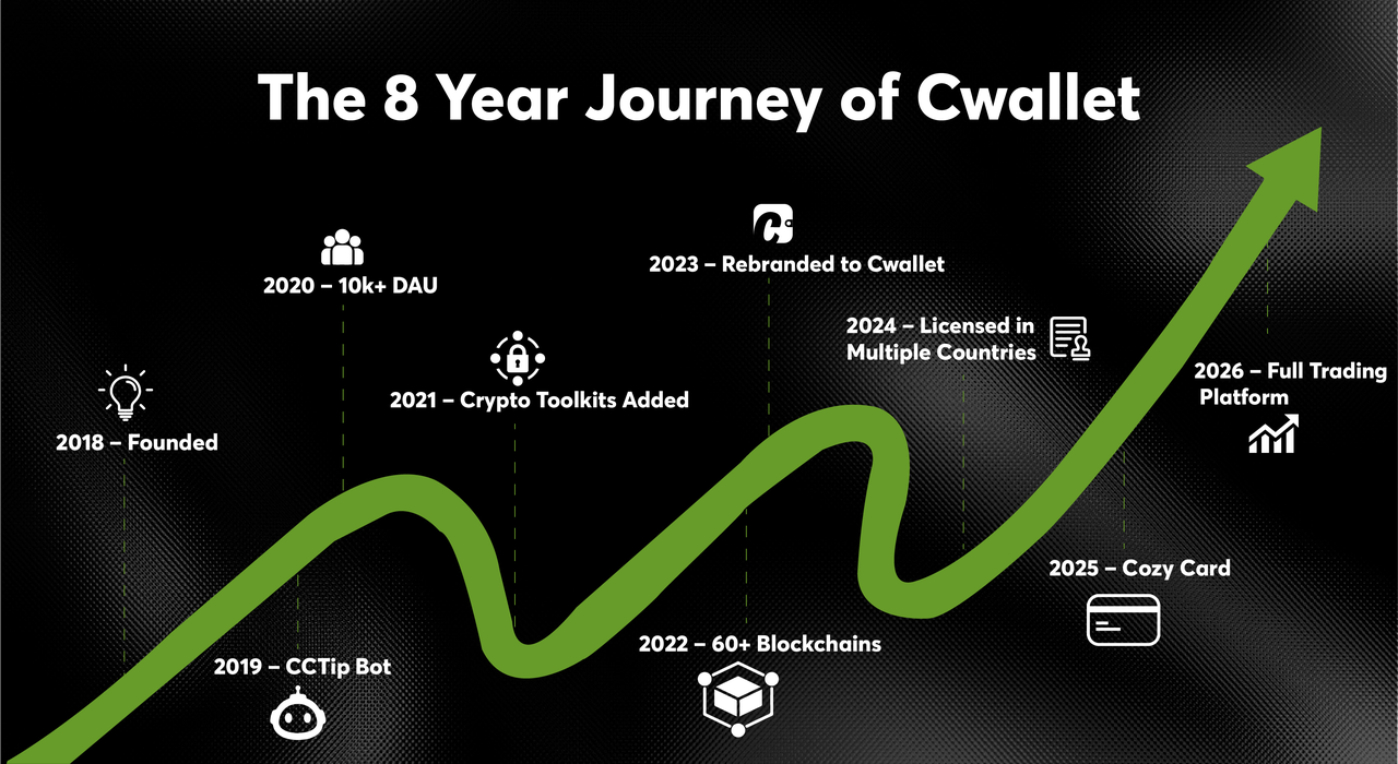 Delapan tahun terakhir telah menguji kami di setiap kesempatan, fluktuasi pasar, perubahan regulasi, dan hambatan teknologi telah membentuk setiap langkah perjalanan kami.Setiap tantangan memperkuat kebenaran yang sudah kami ketahui: Cwallet lebih dari sekadar dompet kripto, ini adalah gerbang, jembatan menuju partisipasi kripto yang aman, penemuan, dan dunia Web3 yang lebih luas.