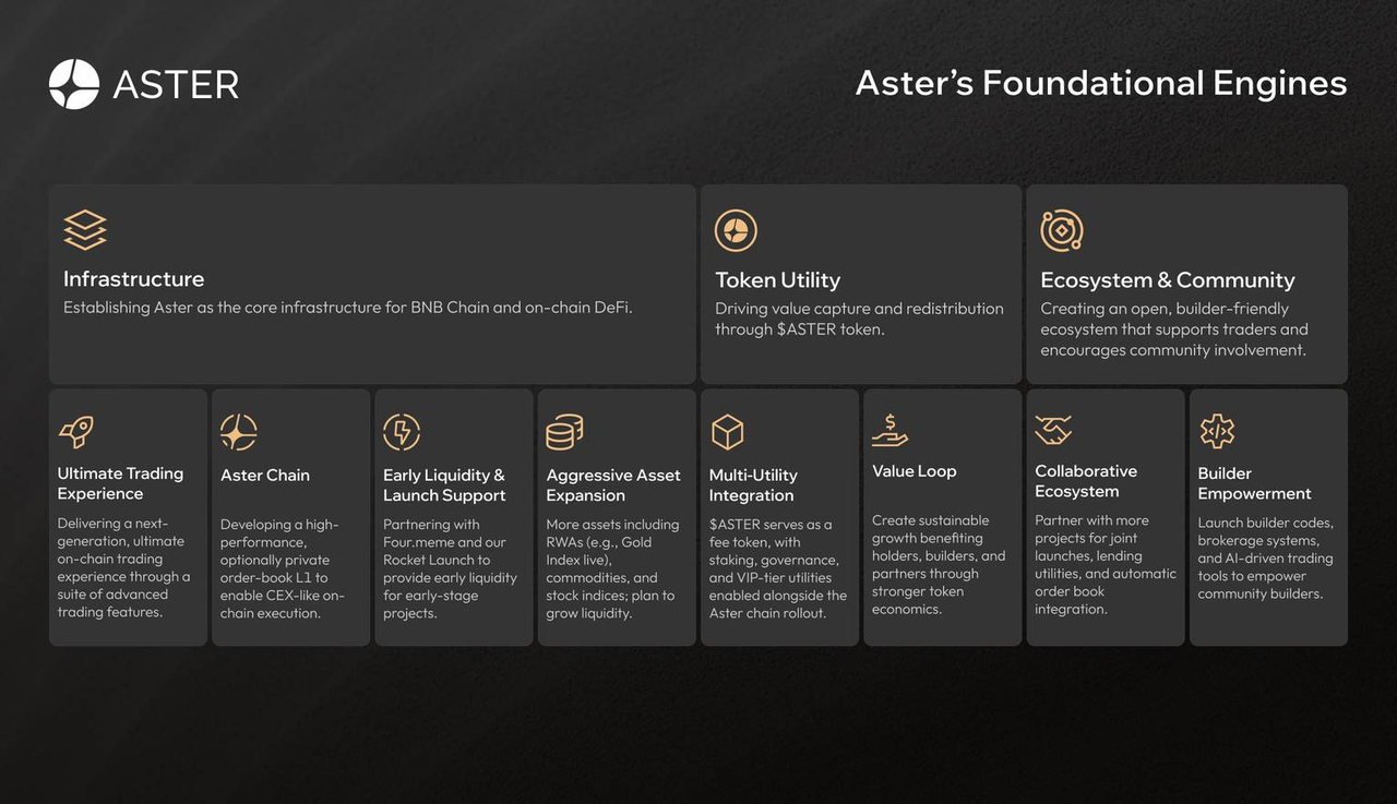 Peta jalan Aster mencerminkan tren yang lebih luas di dunia kripto: platform yang beralih dari "alat fungsi tunggal" menuju lapisan infrastruktur lengkap. Dengan meluncurkan rantai Layer-1-nya sendiri, Aster memberi sinyal bahwa mereka ingin menjadi lebih dari sekadar tempat perdagangan — mereka bertujuan untuk menjadi jaringan dasar untuk DeFi, aset tokenisasi (RWA), dan aplikasi terdesentralisasi yang tahan masa depan.
