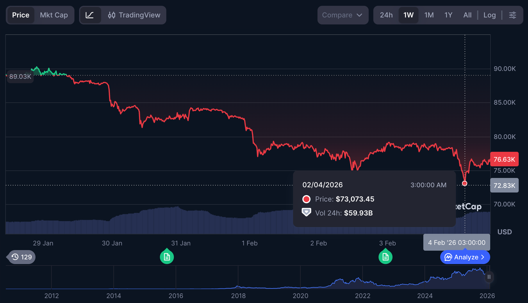 Bitcoin recently tested the $73,000 level, wiping out gains accumulated since a widely watched political catalyst last year. At first glance, this move looks unsettling.