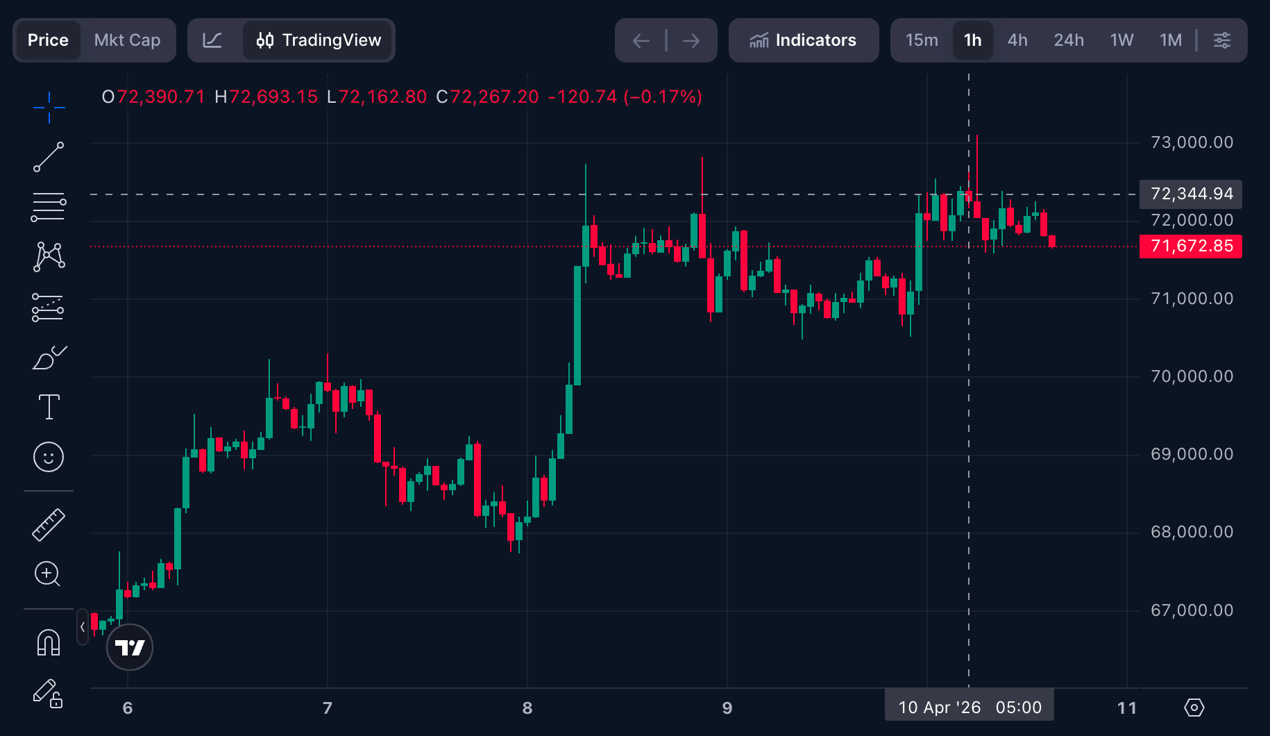 Selama berminggu-minggu, aksi harga BTC tetap terkunci di antara $65.000 dan $70.000, dengan setiap upaya breakout memudar tepat saat momentum mulai terbentuk. Pasar terasa seimbang — hampir terlalu nyaman — seolah-olah pembeli dan penjual telah menerima rentang tersebut sebagai normalitas baru. Itulah yang membuat pergerakan di atas $72.000 ini berbeda.