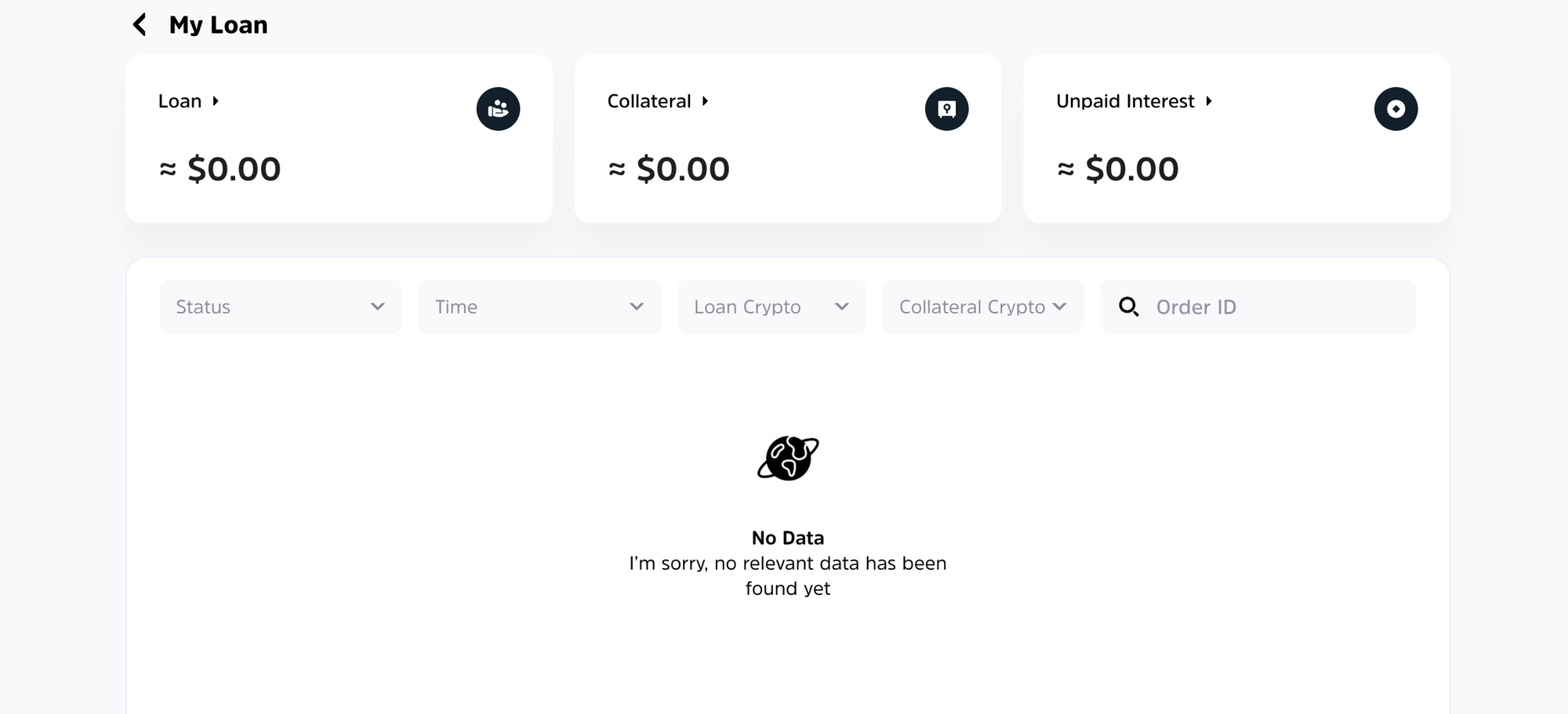 When your loan is due or you're ready to retrieve your collateral, get into the "My Loan" page, repay your loan, and your collateral will be returned to your wallet.