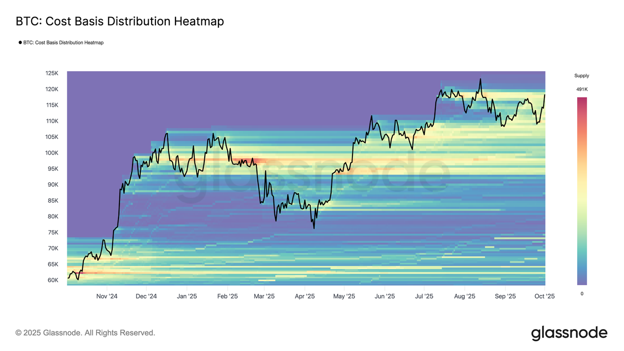 However, sustaining momentum requires clearing a significant hurdle. The recent bounce now faces a dense supply cluster accumulated between late August and the $114k–$118k range. Holders who bought near these highs may view the rebound as an opportunity to exit at break-even or modest profit, creating notable overhead resistance.