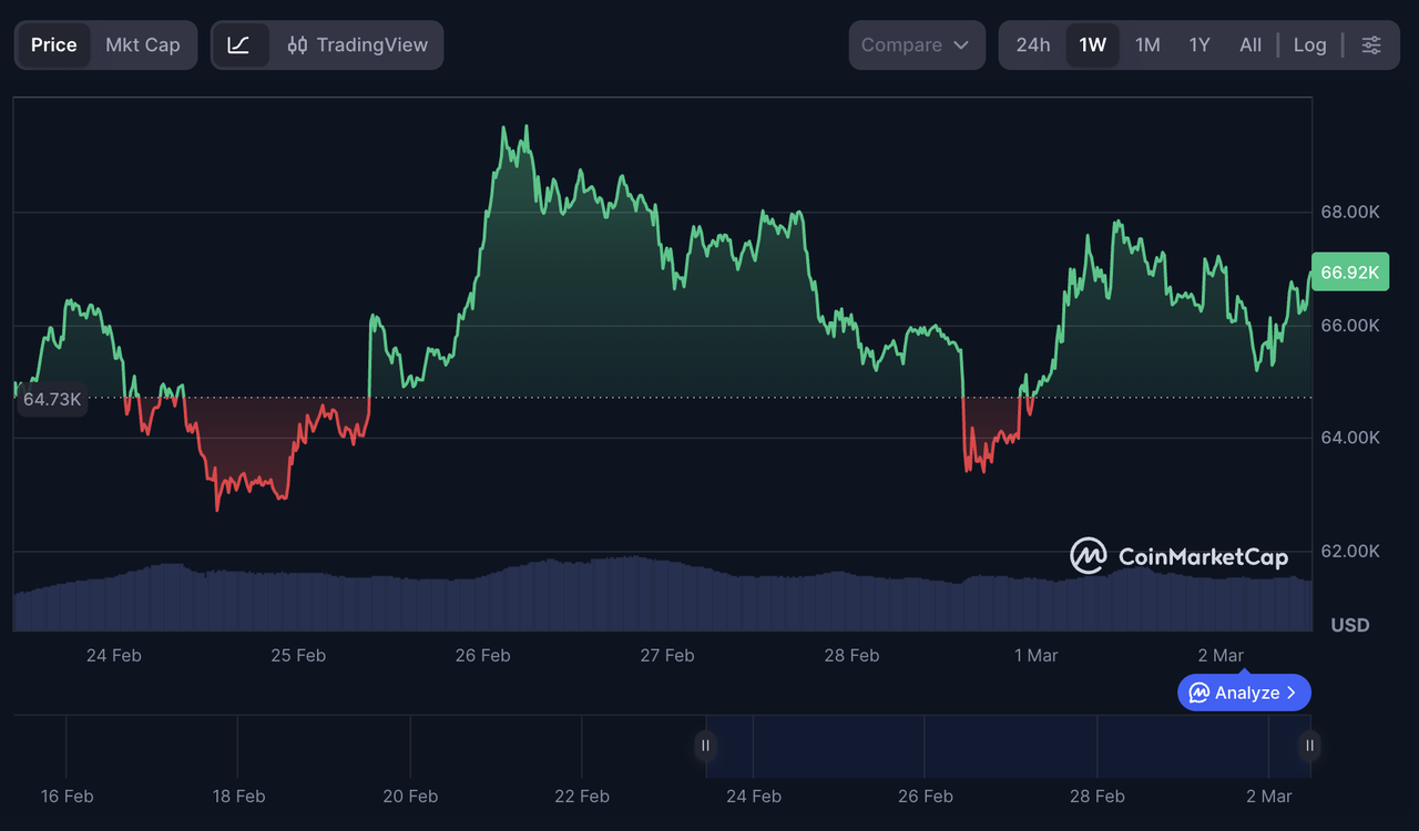 Following reports confirming the death of Iran’s Supreme Leader, Bitcoin experienced a modest rebound toward $67,000–$68,000, reflecting both reflexive dip buying and short-term position adjustments.