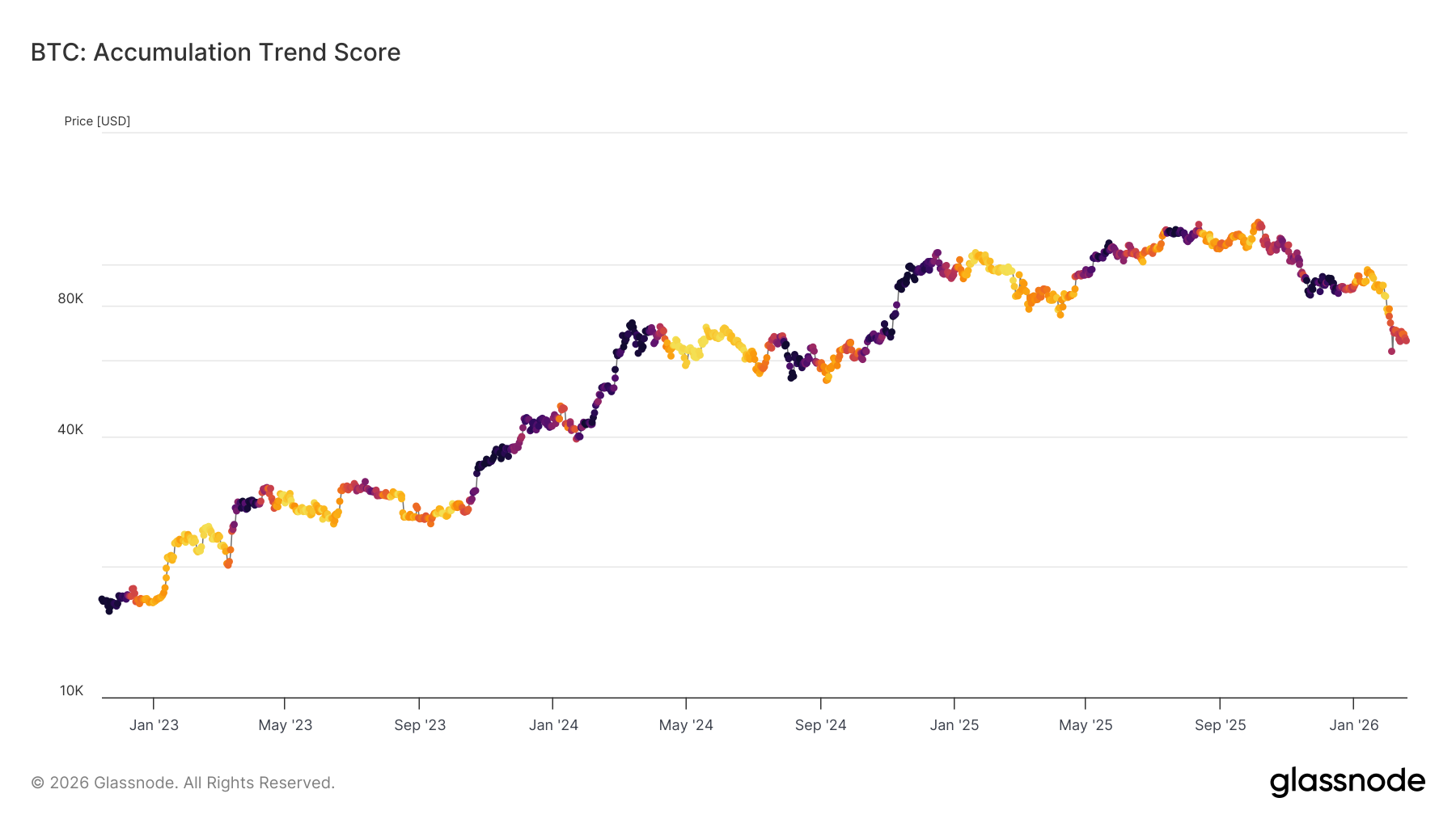 - Bitcoin continues to oscillate within a range anchored between $60K and $70K, a level consistent with mid-to-late bear market phases.