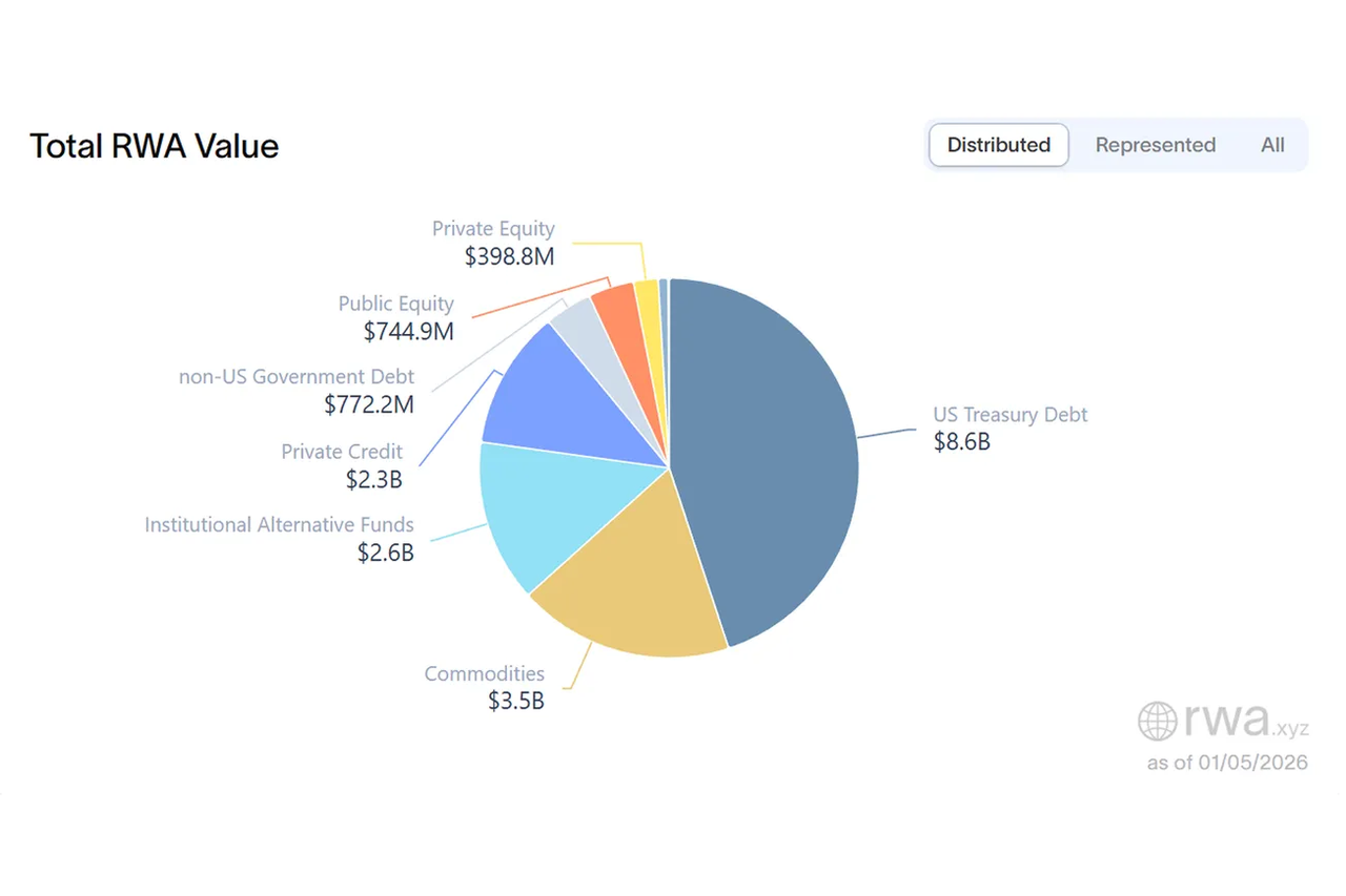 For example, if most tokenized value is concentrated in a few custodial contracts with limited trading markets, it can be "on-chain" in a technical sense but disconnected from real economic usage.