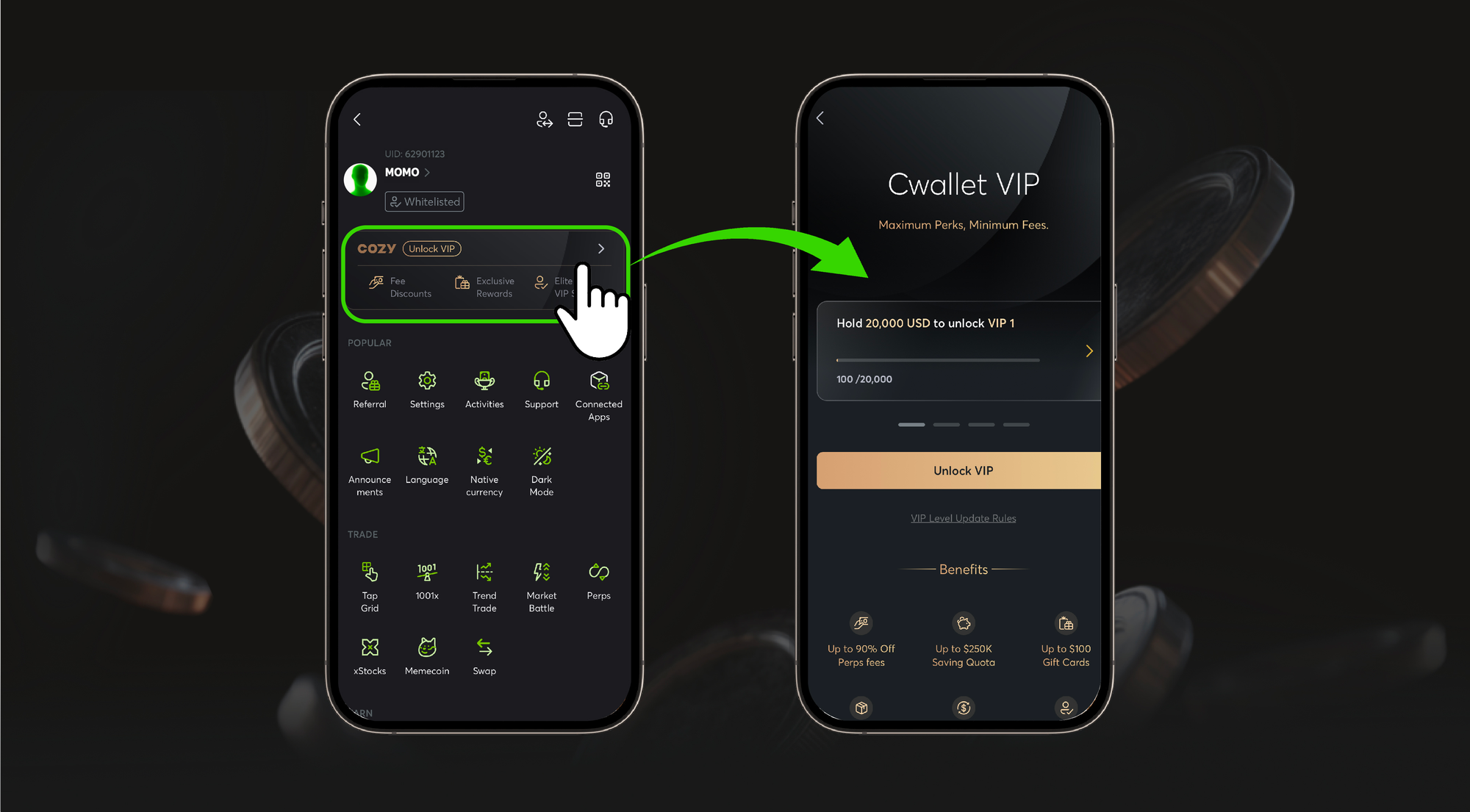 Kami telah melihat Anda melakukan trading di tengah volatilitas, berbelanja dengan nyaman menggunakan Cozy Card, dan mengembangkan kekayaan Anda melalui alat finansial kami. Hari ini, kami mengambil langkah paling signifikan dalam sejarah merek kami untuk menghormati perjalanan tersebut. Cwallet VIP System telah hadir, dan dirancang untuk mendefinisikan ulang arti menjadi power user di dunia terdesentralisasi.